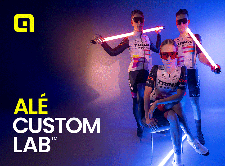 Alé Custom Lab™ est plus qu'un service de personnalisation : c'est un laboratoire où les idées prennent forme à travers la synergie des esprits, l'expérience, la qualité et la passion du vélo, donnant naissance à des créations sur mesure, uniques et surprenantes.